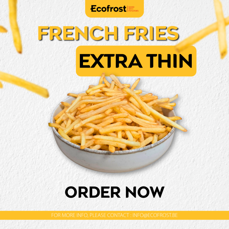 Estamos encantados de presentar nuestra última innovación: patatas fritas súper finas 4/4, ¡una deliciosa incorporación a nuestra gama de productos! Crujientes, nuestras nuevas papas fritas son perfectas para todas tus comidas y ocasiones especiales.