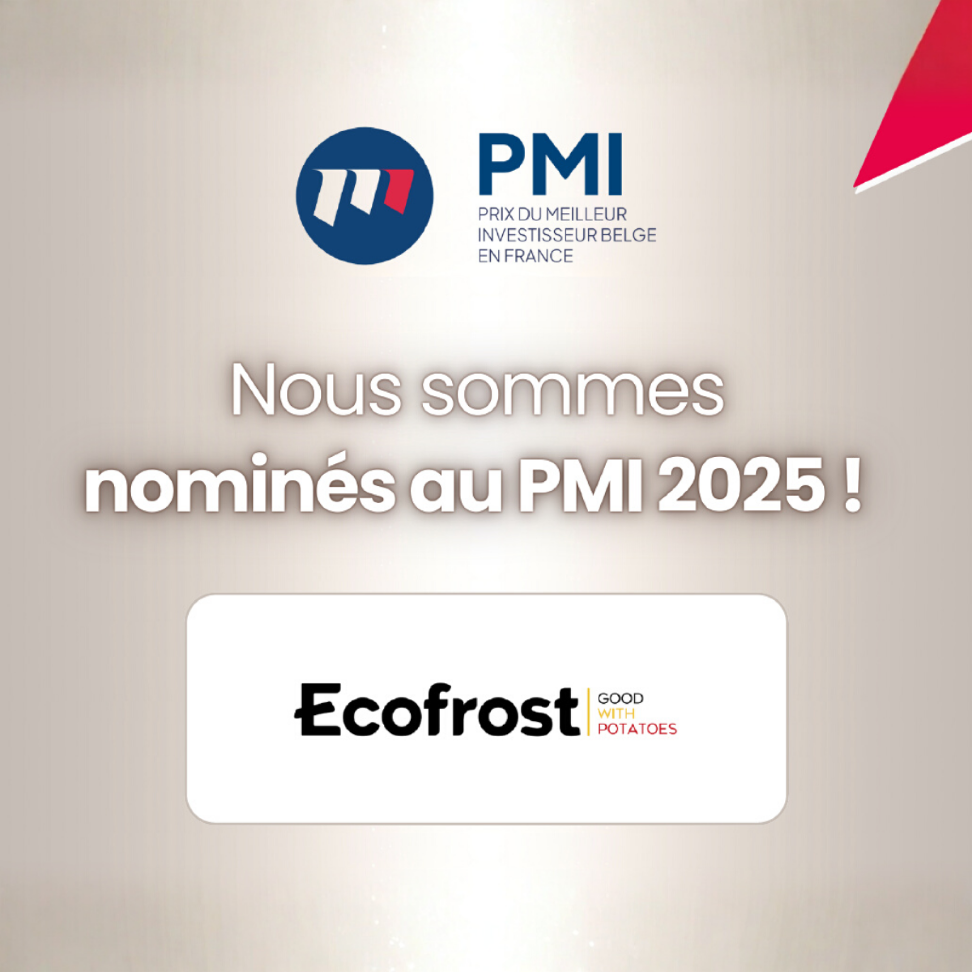 S potešením oznamujeme, že spoločnosť Ecofrost France bola nominovaná na cenu Najlepší belgický investor vo Francúzsku - PMI 2025 🏆