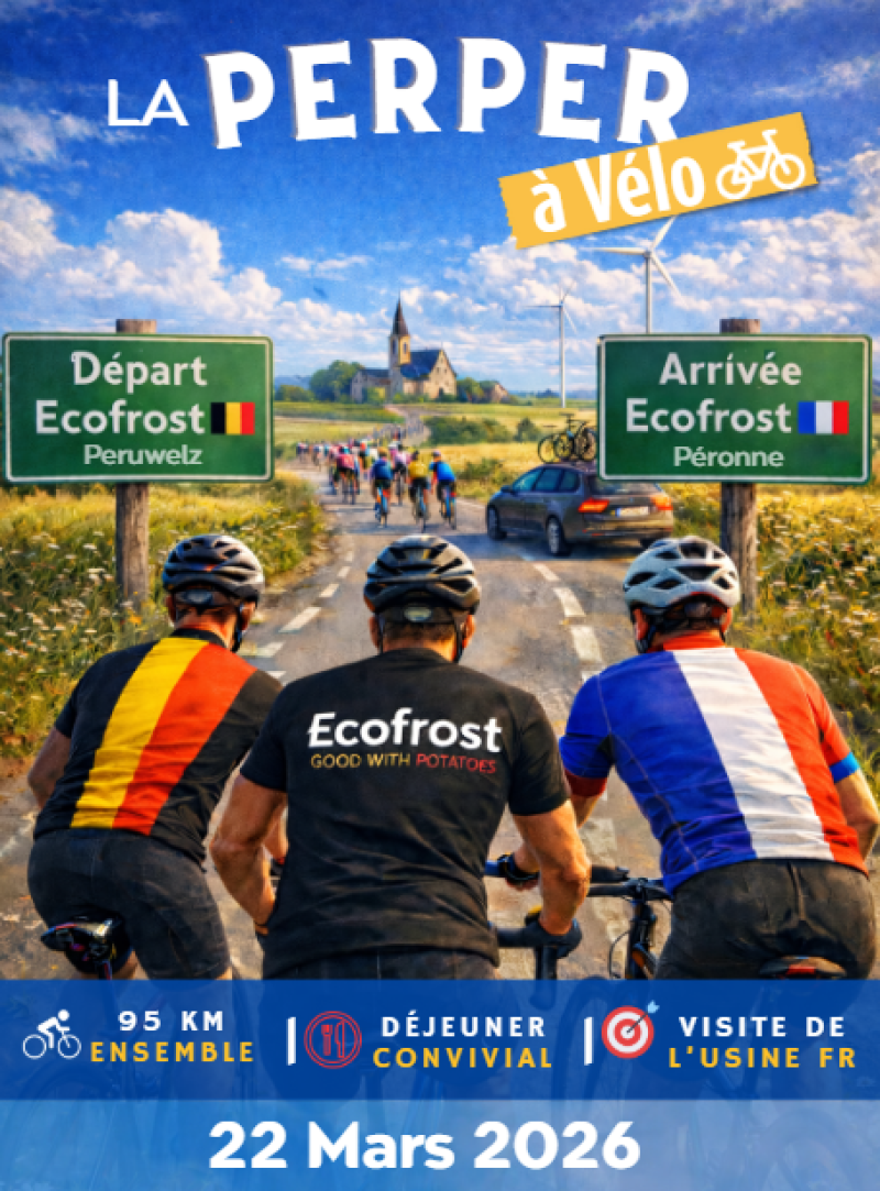 Söndagen den 22 mars 2026 anordnar Ecofrost La PERPER med cykel mellan Ecofrost Peruwelz och Ecofrost Péronne.